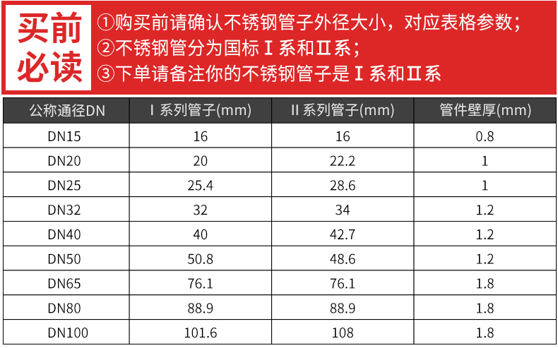 適用連接方式:卡壓連接 適用規(guī)格: DN15-DN100