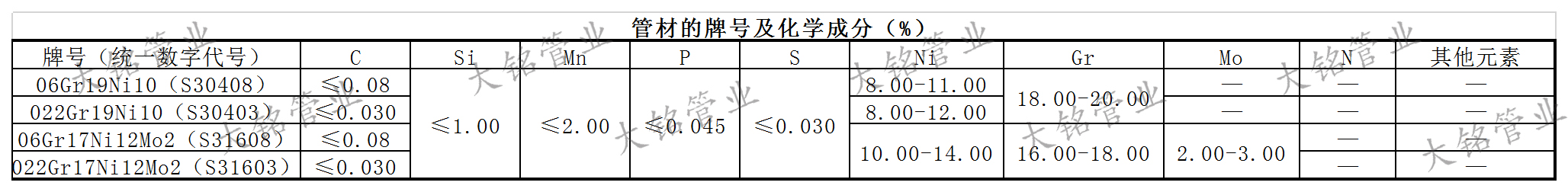 建筑給水薄壁不銹鋼管管材和管件均由含鉻(Cr)量在12%以上,并按需添加其他金屬元素所形成的奧氏體晶體結(jié)構(gòu)性質(zhì)的鐵合金。添加鎳(Ni)可提高材料的延展性和韌性,使加工易成型,宜彎曲。減少碳(C)含量,可提高材料的焊接性能。添加鉬(Mo)或錳(Mn)等含量,可提高材料的耐點蝕和耐縫蝕的性能。